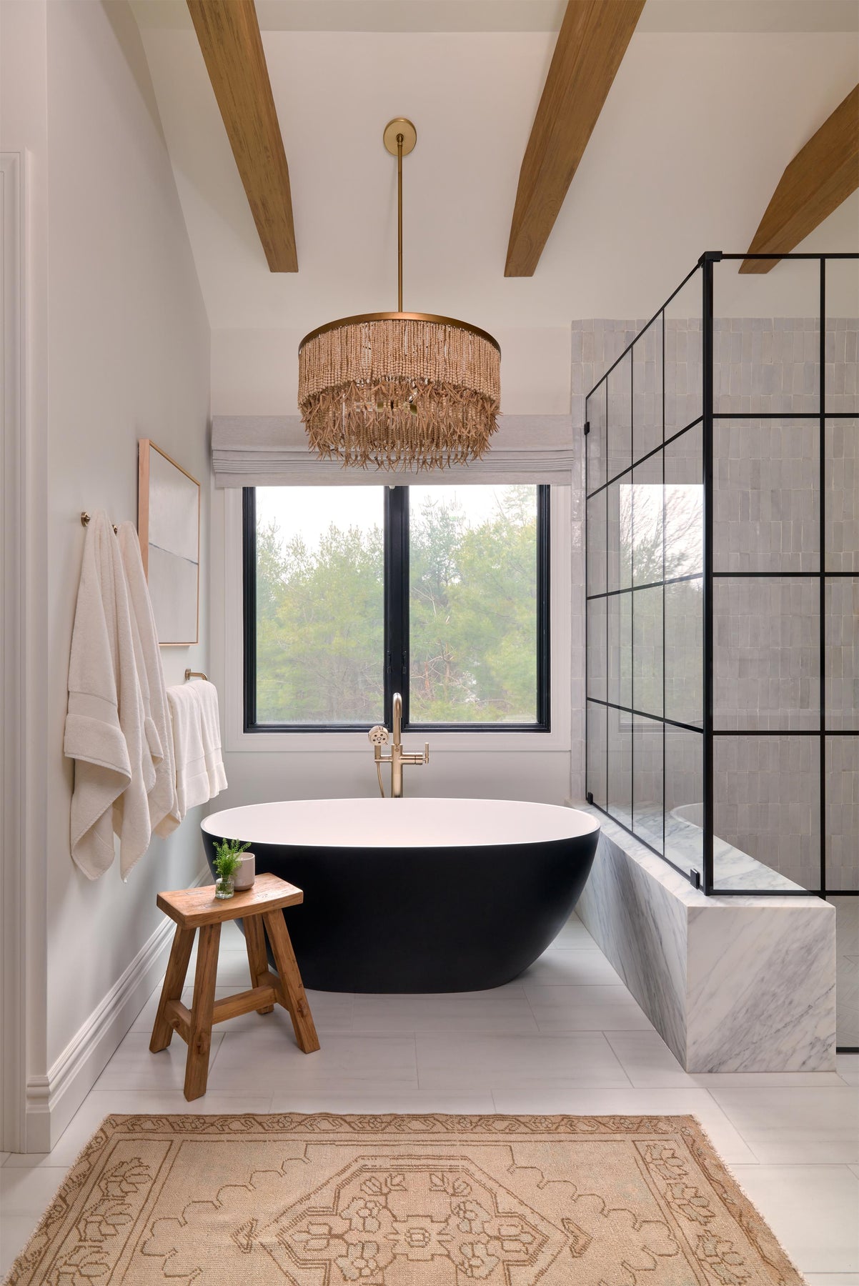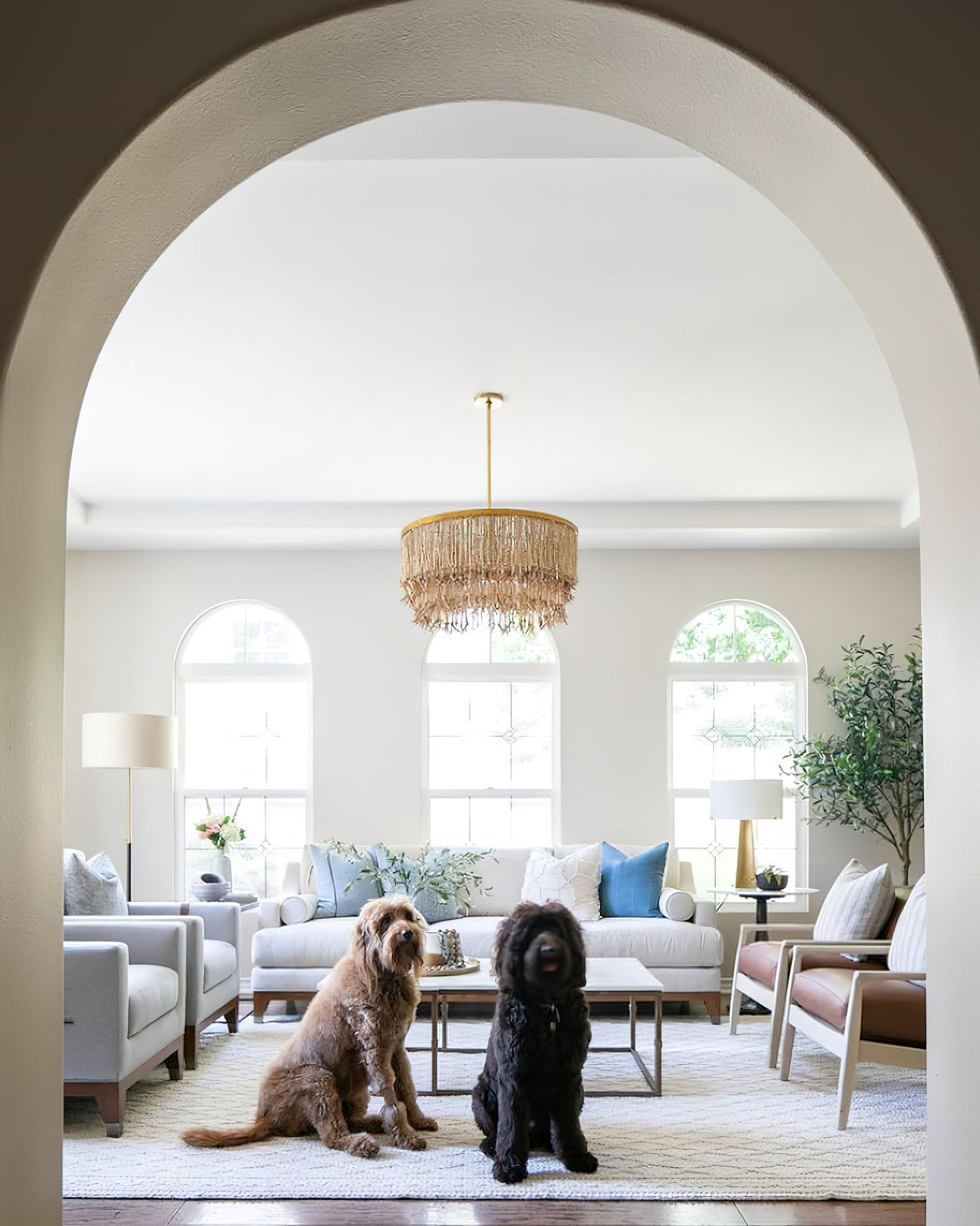 Versatile Styling: Neutral hues and antique brass frame complement a variety of interior themes.