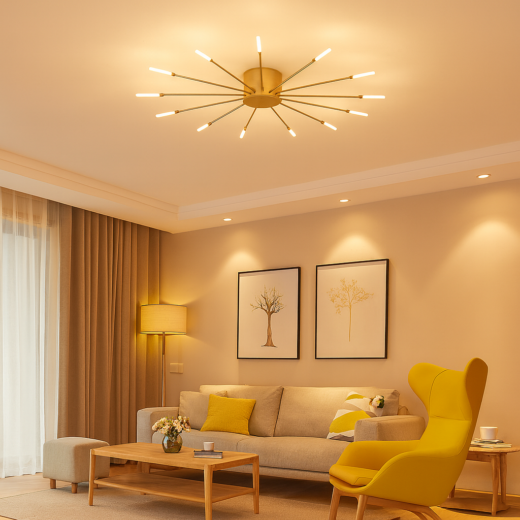 Size & Dimensions: Designed with a balanced layout ideal for medium to large rooms; proportions support both low and standard ceilings.